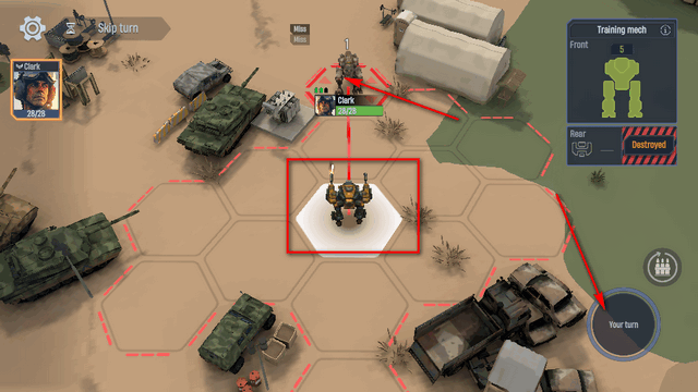 8、将机甲移动到离敌人最近的位置后,再开始对战。