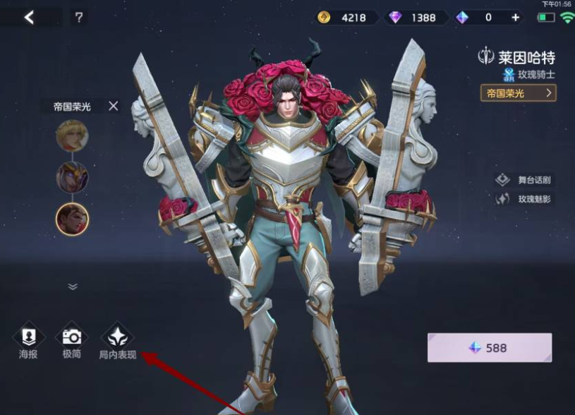 3、选择好皮肤后,点击局内表现按钮,如下图。