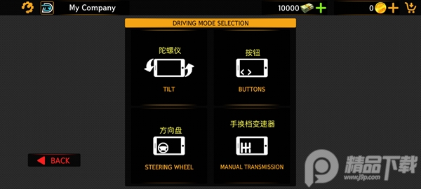 2、进入游戏后,你需要选择自己习惯的操作方式,游戏内共提供了四种,分别为陀螺仪、按钮、方向盘以及手换档变速器,小编接下来以按钮模式为例,为大家介绍一下游戏的基本玩法。