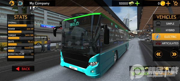 5、选择一辆最适合自己的车辆,游戏内提供多种常规/柴油、混合动力、电动和铰接式巴士可供选择,每种公交车的属性都不相同。