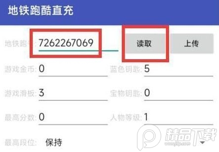 3、紧接着将地铁跑酷首充ID填写进下载好的地铁跑酷首充器中,然后点击读取。