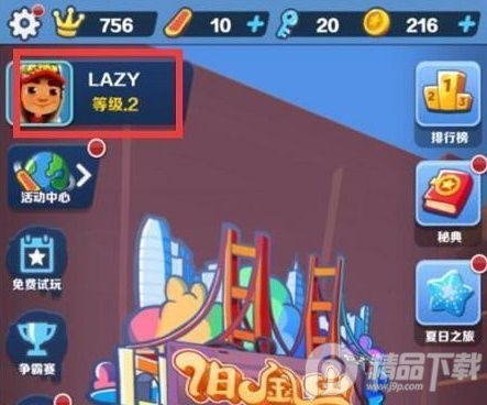 1、首先我们需要先下载地铁跑酷双旦版游戏,然后进入游戏点击左上方的个人头像,开始了软件的操作教程。