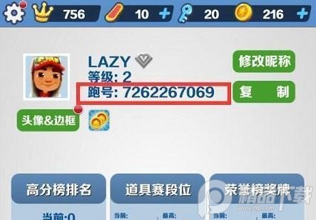 2、然后在个人信息页面找到下图中的跑号,点击右侧的**就能获取地铁跑酷首充ID。