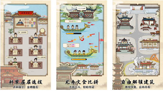 除了在书香的熏陶下,培养门生考科举中进士,入得庙堂争夺权位,还能与其他书院的学生进行激烈的龙舟文会比拼,体验多姿多彩的书院生活!