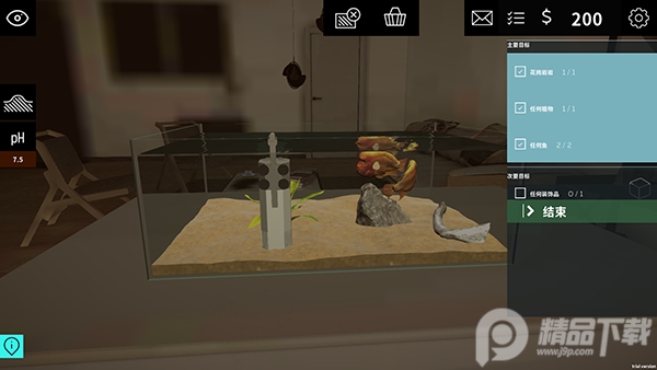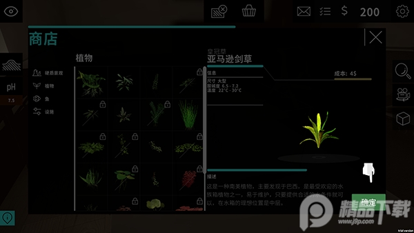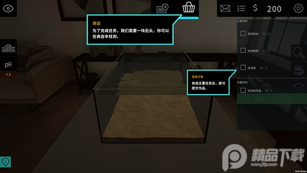 4、点击顶部商店,有各种各样的植物、石头、景观和鱼类等,根据任务目标选择对应的物品进行放置。