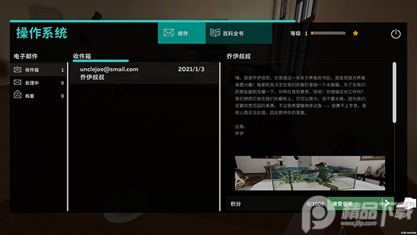 2、开始游戏后你会看到自己的邮件收件箱有新的任务,点击接受任务。