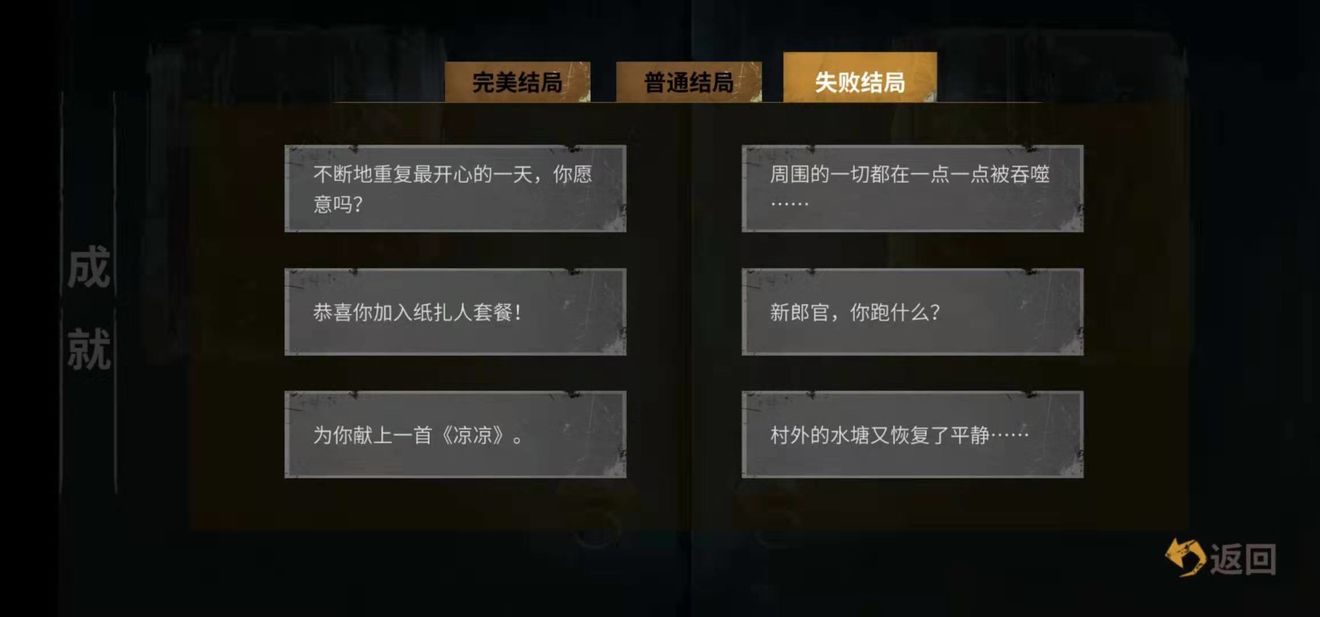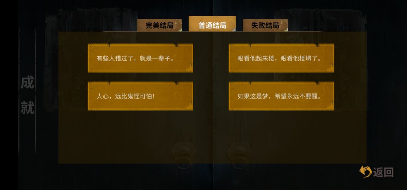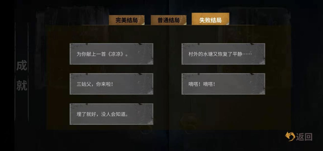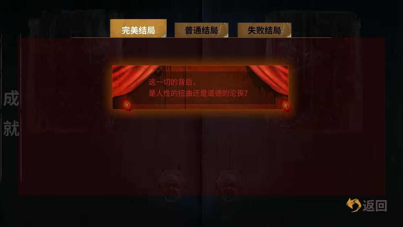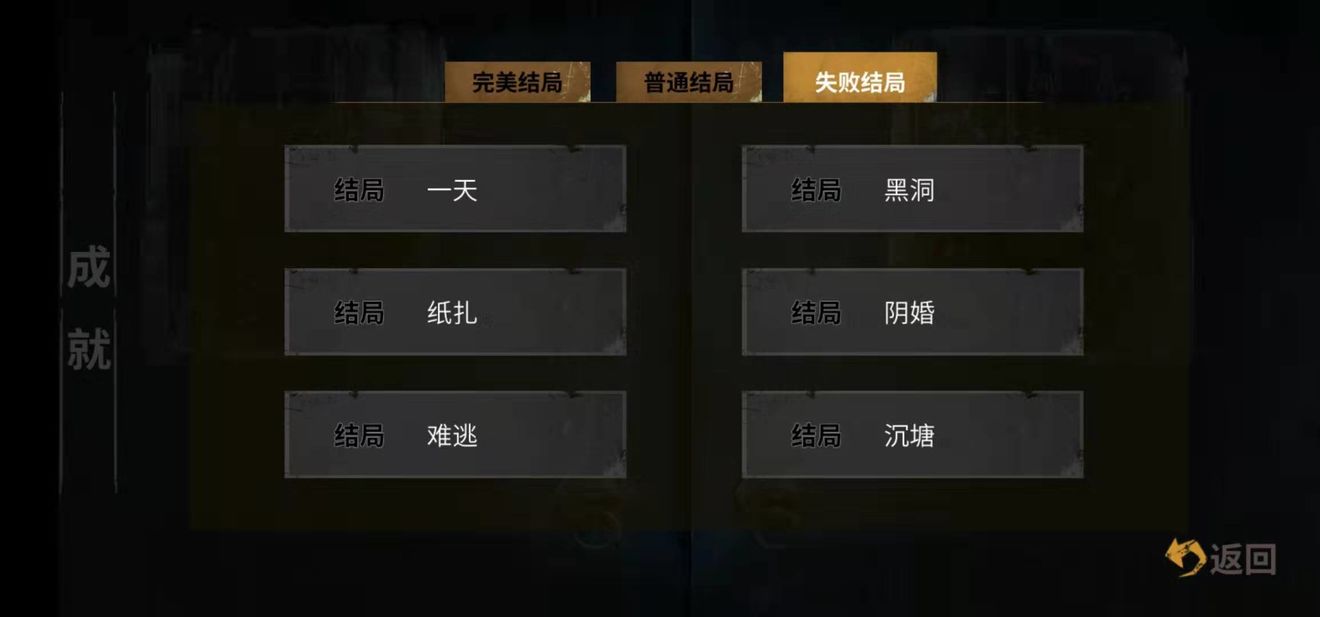 然后的然后……存档点绝对有什么问题吧?只要我在结局了之后选择重新探灵,那我的结局就一定会没掉,真的吐了,我都不怎么看成就,还是集了好多个不同结局去看的时候才发现只剩我刚集的那个结局了(一种植物)