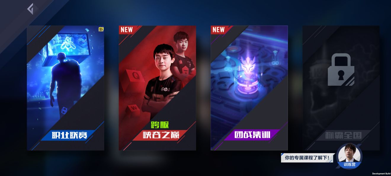 在比赛界面分别有职业联赛,峡谷之巅,团战集训,以及称霸全国四个板块