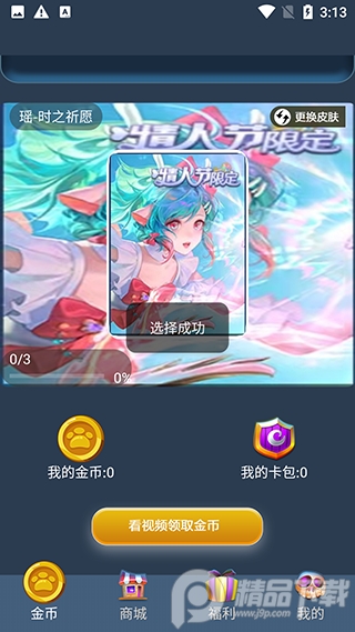 3、选择成功目标以后,接下来我们要做的就是通过看视频广告来赚取金币,用金币去抽皮肤卡碎片。