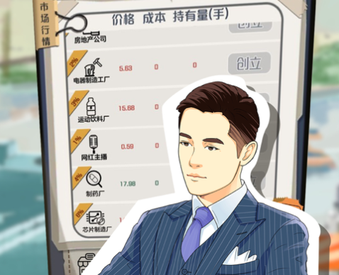 4、创业:创办公司时需要大笔投资,后期可追加或减少投入,公司会涨跌,可获取盈利