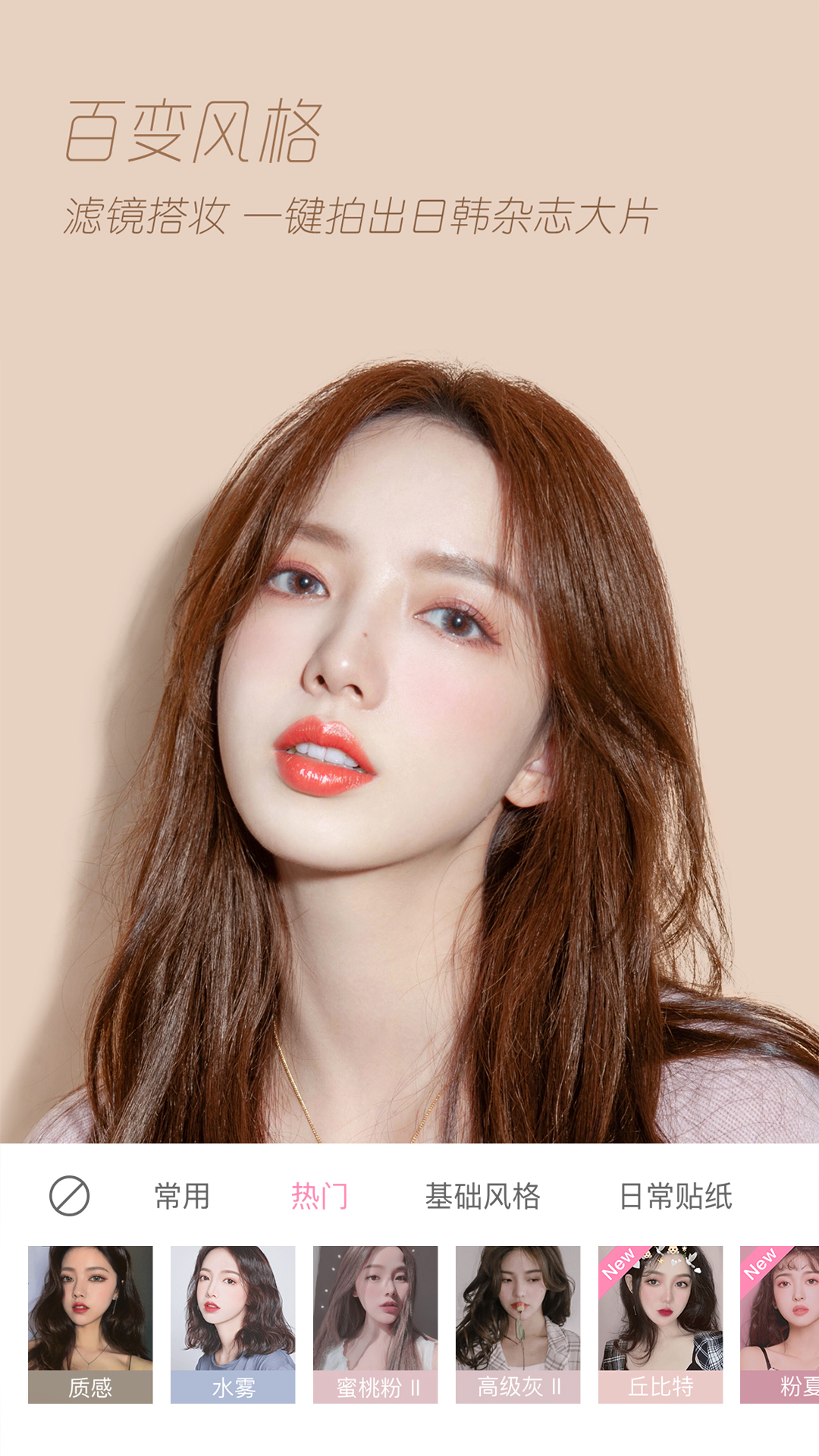 滤镜搭配妆容,营造多样化的整体拍照氛围,每一张都可以是不同风格的自己,轻轻松松拍出杂志大片。