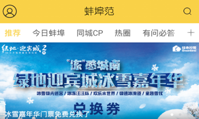 蚌埠本地应用,本地用户数量超过70万,每天有超过30万的蚌埠同城用户在蚌埠范app查看蚌埠本地新闻资讯、享受蚌埠本地团购优惠、分享蚌埠本地美食、查找蚌埠本地**工作等等。
