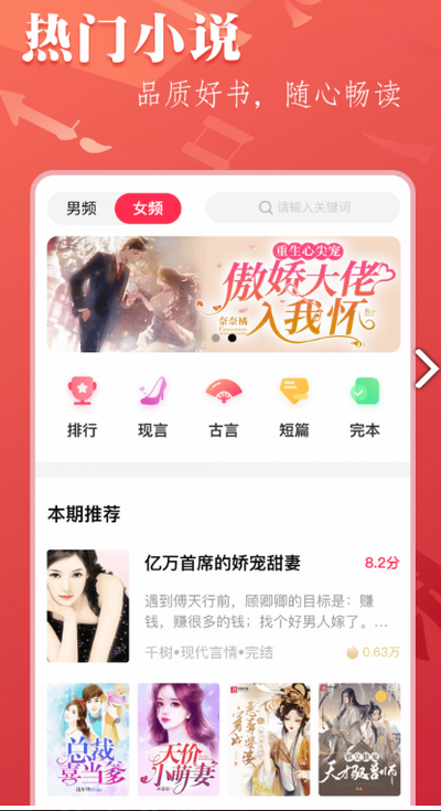 2、根据男生、女生不同阅读喜好,结合高分优质书单,高分小说精细化推荐,从此告别书荒困扰;