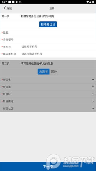 2、选择志愿者,扫描身份证,录入手机号