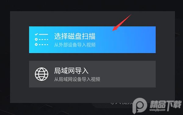2、它拥有两种导入方式,分别是选择磁盘扫描,和局域网导入,首先介绍磁盘扫描方法,点击选择磁盘扫描;