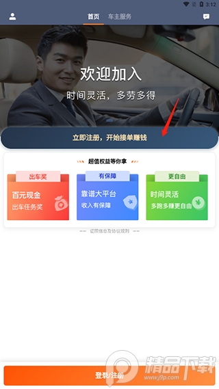 1、在本站下载打开滴滴出行司机端,点击立即注册,开始接单赚钱;