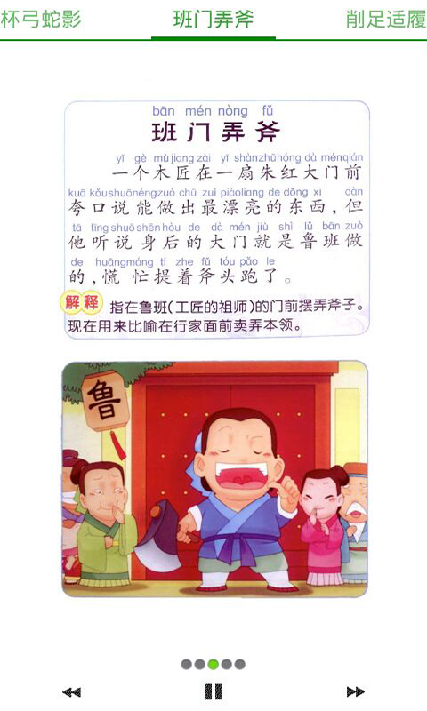 儿童成语故事大全app界面漂亮,方便易用, 包含成语的读音、释义、出处、该成语的用法和一则成语故事。边看故事边学成语。 阅读方便;一键收藏;使用小贴士