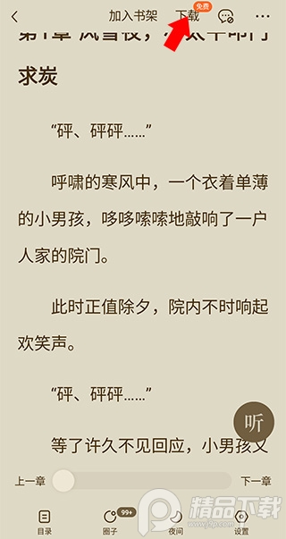 1、选择想要下载的小说后,来到小说阅读界面,点击小说正中间区域即可弹出菜单