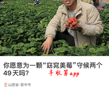 现在淘宝都已经开始电商推广,进行农业扶持,让更多的人了解到各个地区的产品,丰收筹app,这款软件也是从农业扶持出发,连接生产者和消费者,打造一体化的农业众筹模式,通过引流消费,代替捐赠,扶持地方产业,使得贫困地区真正富起来!