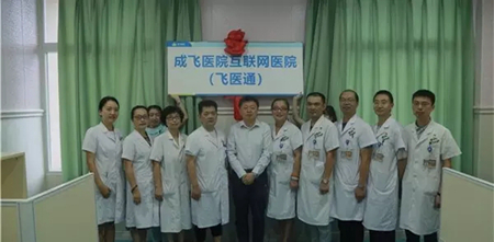 2018年8月30日成飞医院与“好医生”集团合作建设的互联网医院项目——“飞医通”揭牌仪式在成飞医院门诊部“飞医通”办公室举行。“好医生”集团副总裁林永宁、成飞医院班子成员和部门职能部门负责人出席开通揭牌仪式。