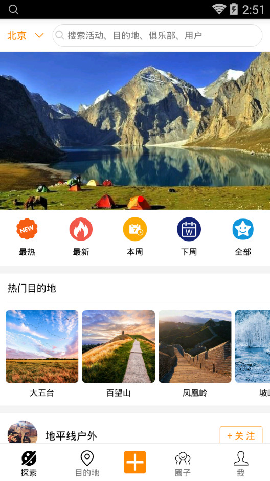 旅游户外供应商可以通过软件免费宣传自己的户外旅游活动,为自己的活动打广告吸引用户参加
