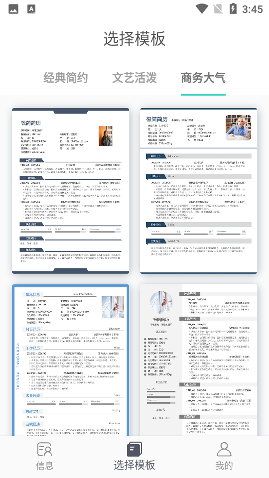 简历牛制作简历就是牛!简历牛设计了了几十种精致的简历模板,极简简历app,提供海量精美的简历模板,助你轻松找工作,有时尚,简约,经典等多种风格,APP设计的也非常简约,目的就是让您能快速制作出精美的简历。