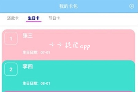 卡卡提醒时一款针对于生日,节日,信用卡,贷款等卡片到期自动提醒,
