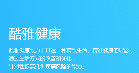 关心自己的健康问题就来酷雅健康客户端,帮助用户打造美好健康生活,让自己的生活变得精致起来,通过生活方式的改善和优化,针对性提高抵御疾病风险的能,告诉不健康,你值得拥有!