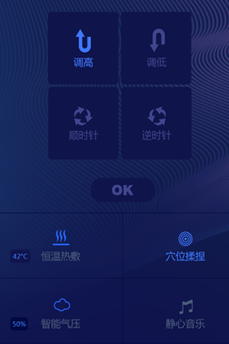 慕思**头罩,是一款连接蓝牙后可随心调节的**器,全智能操控的应用程序,具有恒温热敷、穴位揉捏、智能气压、静心音乐四大核心功能,给您带来不一样的舒适的**体验感!