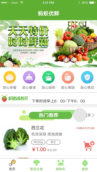 2、致力于为广大消费者提供新鲜的优质的实惠的食材,带给消费者一个轻松愉快,方便快捷的购物体验。