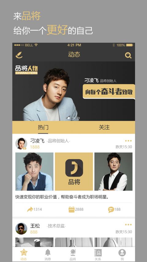 品将app是一款以个人形象作为品牌进行销售展现自己的手机软件,拥有一定的品牌效应就是拥有一定的粉丝人数,软件通过动态展现自己来吸引用户建立自己的品牌形象,有兴趣的朋友们快来下载吧。