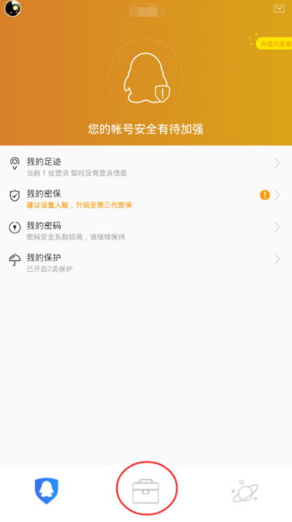 打开进入QQ安全中心,点击底部菜单中的:“我”。