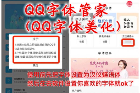1、使用本软件之前请先把自己的QQ字体改为汉仪蝶语体