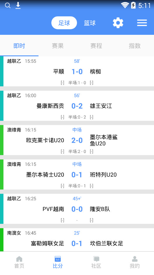 一切都在比分栏目之中,有即时的对战比赛列表,也有已经比赛完的结果公布,还有其他等。