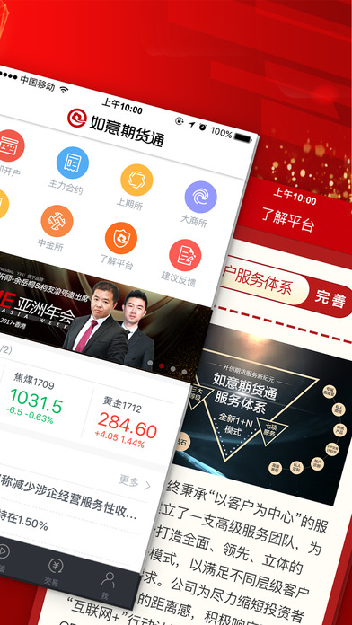 如意期货通(金融期货投资)手机版是一款针对于期货投资交易的手机移动软件,用户通过软件可以实现最简洁方便的期货交易投资,还有更多期货相关资讯实时推送,快来下载吧。
