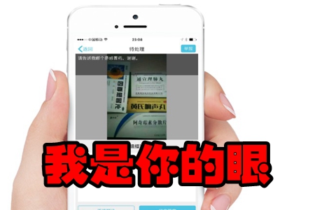 “我是你的眼” 基于移动互联网技术连接视障者与志愿者,通过图片、视频、预约出行陪同三种方式帮助视障人群解决生活中遇到的困难。 例如,视障者需要了解面前的牛奶是否已过期,而身边没有人可以帮助时,即可通过“我是你的眼”以拍照或视频的方式发起请求,志愿者接受请求后就可根据所见,告诉视障者牛奶盒上的保质期限。