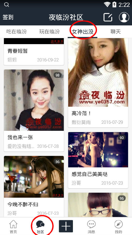 打开软件,在社区栏目中寻找女神出没,就能看到各式各样的女神