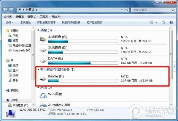 都准备好了,那就把kindle和电脑用数据线连接起来。这里提醒一下,最好用原配的数据线,如果用其他一些数据线,可能会出现导入不了的现象,因为有些数据线仅作充电用,不能用作数据传输。