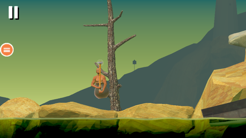 1、玩家控制一个坐在似乎是缸里的人,用一把榔头不断往上爬,操作极其简单;