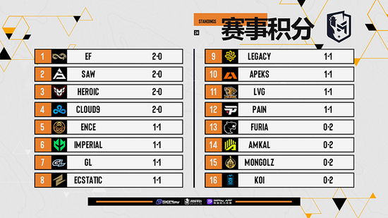 PGL哥本哈根Major首日比赛已结束,看看各支队伍的战况如何吧~